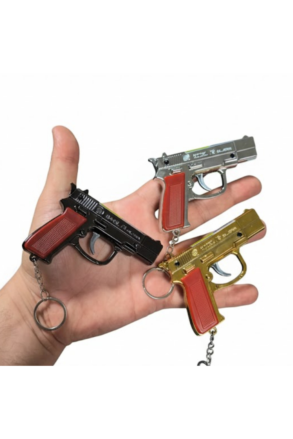Mini Tabanca Figürlü Anahtarlıklı - Kırmızı Lazer + LED El Feneri Özellikli Hediyelik Silah